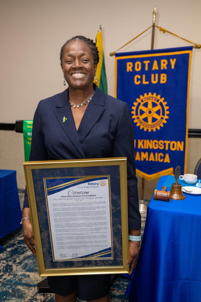 The Rotary Club of New Kingston is deeply honoured to present the Gary Grant Vocational Service Award to Chorvelle Johnson Cunningham. This award is reserved for those who do not merely occupy a profession, but who elevate it – individuals who use their vocation as a vehicle for societal transformation, embodying the Rotary ideal of "Service Above Self."